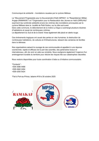 Solidarité nationale après les inondations causées par le cyclone Mélissa