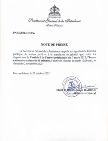 Heure nationale : Haïti repassera à l’heure d’hiver dans la nuit du samedi 1er au dimanche 2 novembre 2025