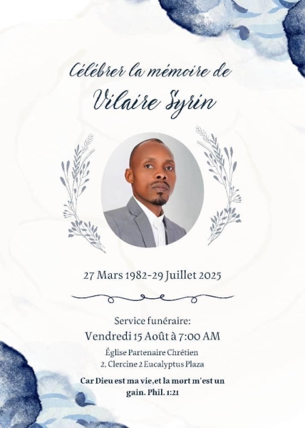 Les funérailles de Vilaire Syrin sont prévues ce vendredi 15 août à l’Église Partenaire Chrétien, à Clercine.